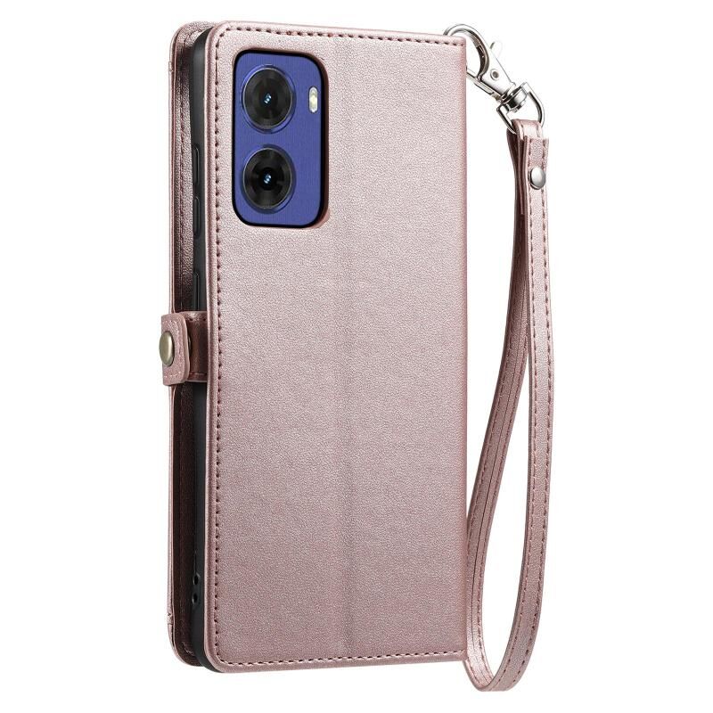 Για Motorola Moto G05 Πορτοφόλι Multi-card Slot Δερμάτινη θήκη τηλεφώνου με κορδόνι (ροζ χρυσό)