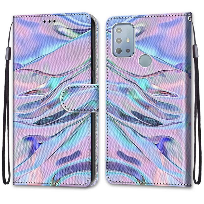 Για Motorola Moto G10 / G20 / G30 Θήκη τηλεφώνου από δέρμα PU με σχέδιο σταυρού, οριζόντιο άνοιγμα, πολύχρωμη (μοτίβο φθορίζοντος νερού) με βάση, θήκες καρτών, πορτοφόλι και κορδόνι. (Κόκκινο)
