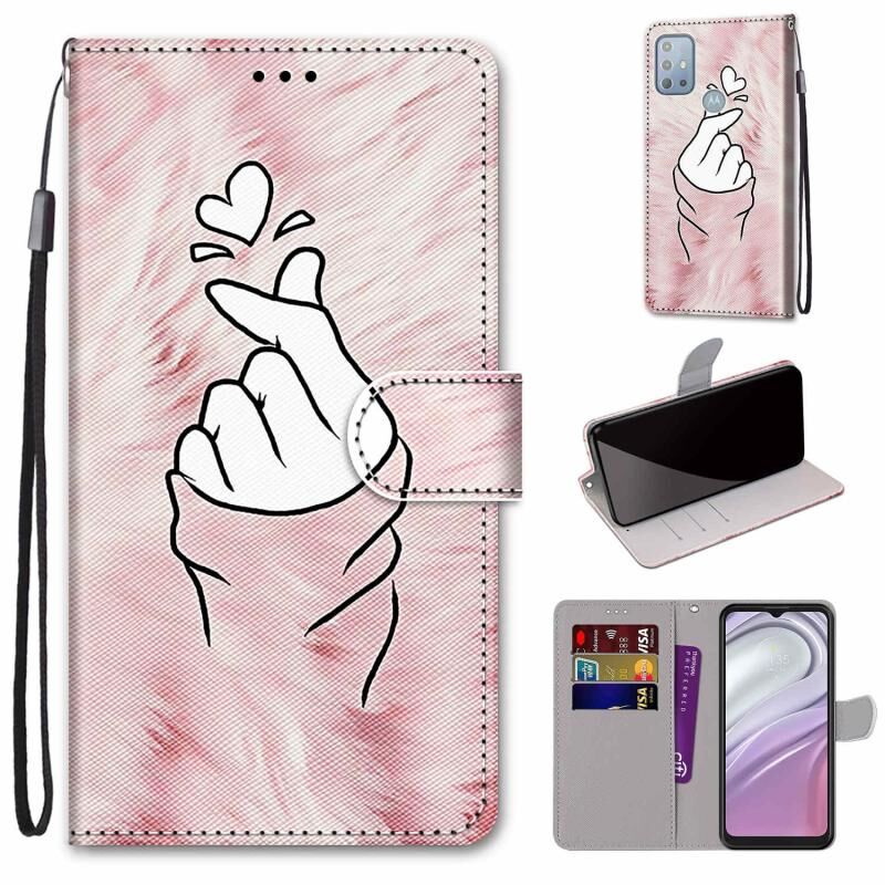 Για Motorola Moto G10 / G20 / G30 Θήκη τηλεφώνου από δέρμα PU με σχέδιο, υφή σταυρού, οριζόντιο άνοιγμα, με βάση & υποδοχές καρτών & πορτοφόλι & κορδόνι (Πολύχρωμο στρώμα (Ροζ Πράσινες Βελόνες)