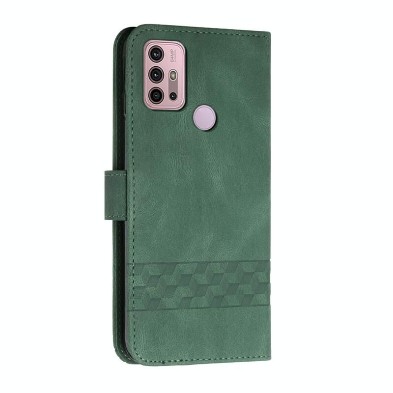 For Motorola Moto G10 / G20 / G30 Cubic Skin Feel Flip Leather Phone Case(Dark Green)