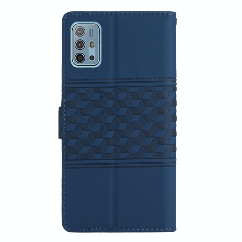 Θήκη τηλεφώνου δερμάτινη με ανάγλυφο σχέδιο διαμαντιού για Motorola Moto G10 / G20 / G30 με κορδόνι (Σκούρο μπλε)