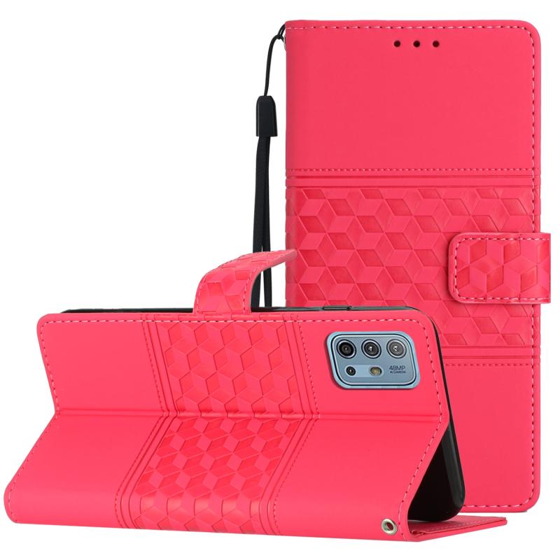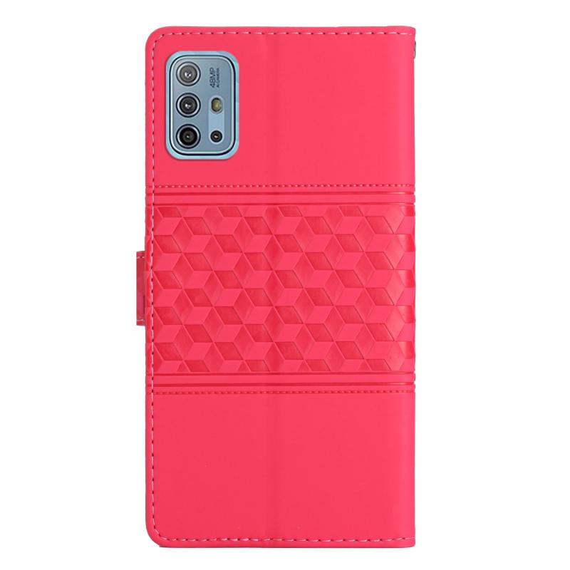 Θήκη τηλεφώνου δερμάτινη με ανάγλυφο σχέδιο διαμαντιού για Motorola Moto G10 / G20 / G30 με κορδόνι (Κόκκινο)