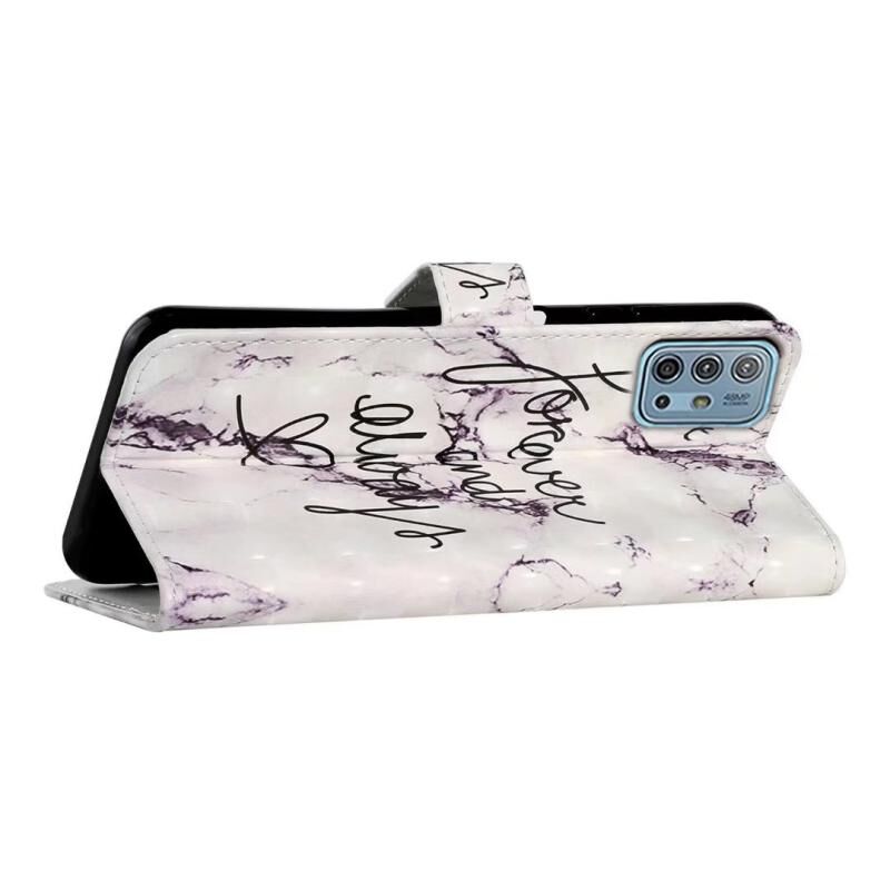 Θήκη τηλεφώνου δερμάτινη με ανάγλυφο σχέδιο λαδιού 3D για Motorola Moto G10 / G20 / G30 (Μάρμαρο με λέξεις)