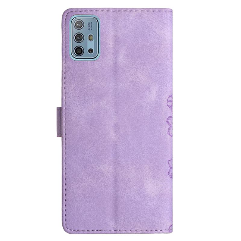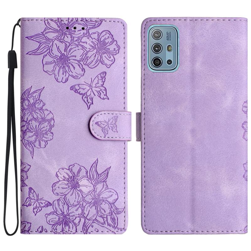 For Motorola Moto G10 / G30 / G20 Cherry Blossom Butterfly Skin Feel Embossed PU Phone Case(Purple)