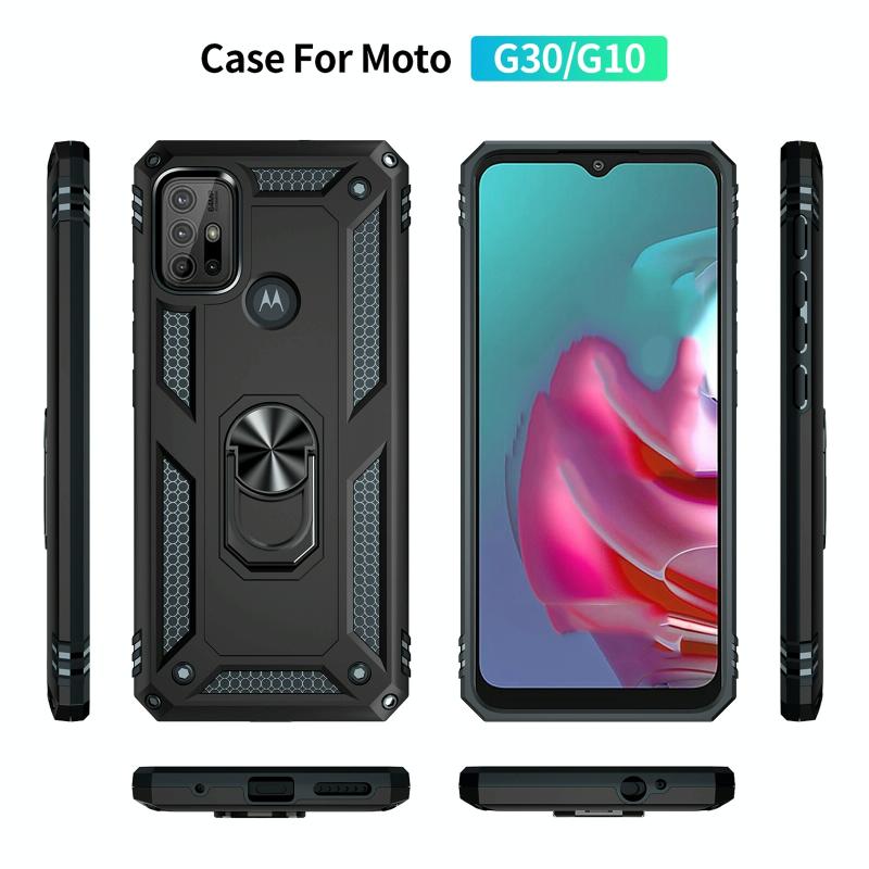 For Motorola Moto G10 / G30 Shockproof TPU + PC Protective Case with 360 Degree Rotating Holder(Black)