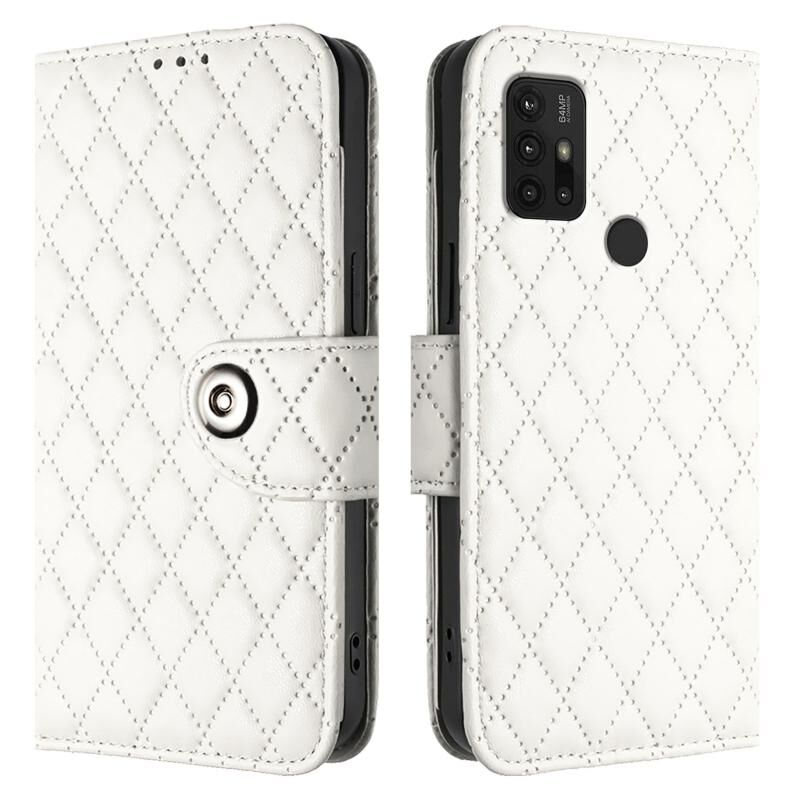 Για Motorola Moto G10 Power Rhombic Texture Flip δερμάτινη θήκη τηλεφώνου με κορδόνι (λευκό)