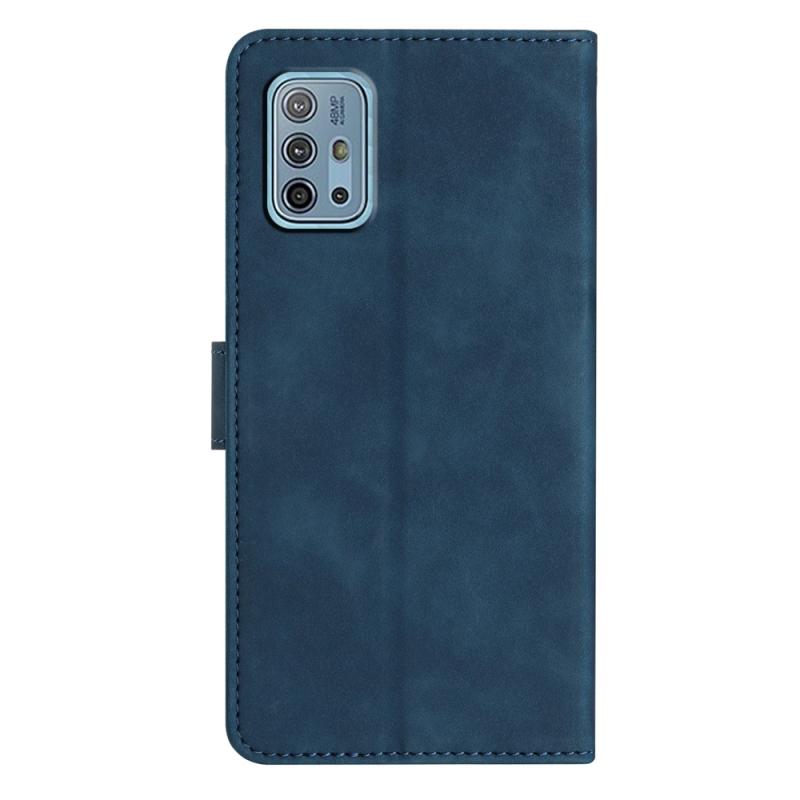 For Motorola Moto G10 Seven Butterflies Embossed Leather Phone Case(Blue)