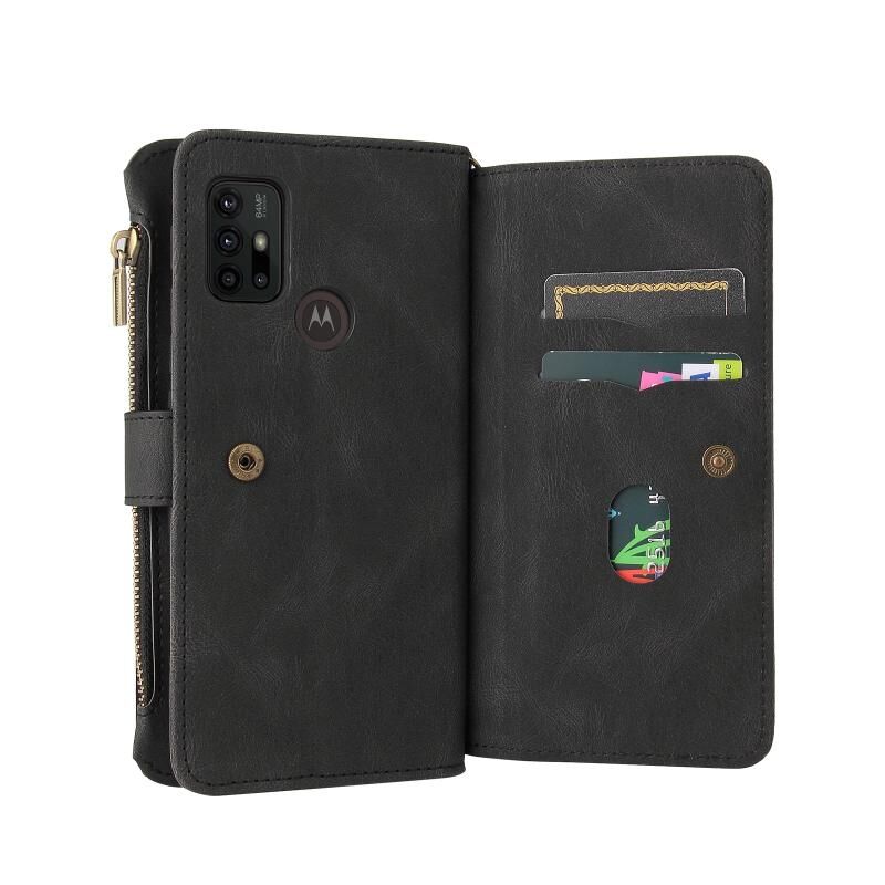 Για το Motorola Moto G10 Skin Feel PU + TPU Οριζόντια Flip δερμάτινη θήκη με θήκη & 15 κάρτες Slot & πορτοφόλι & φερμουάρ τσέπη & Lanyard (Μαύρο)