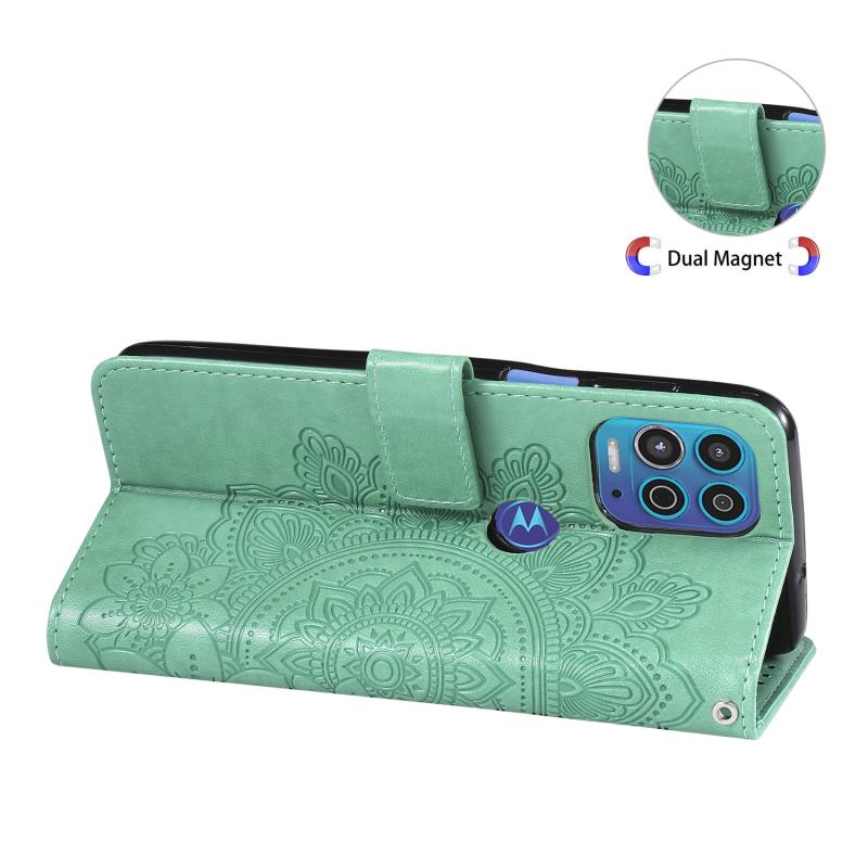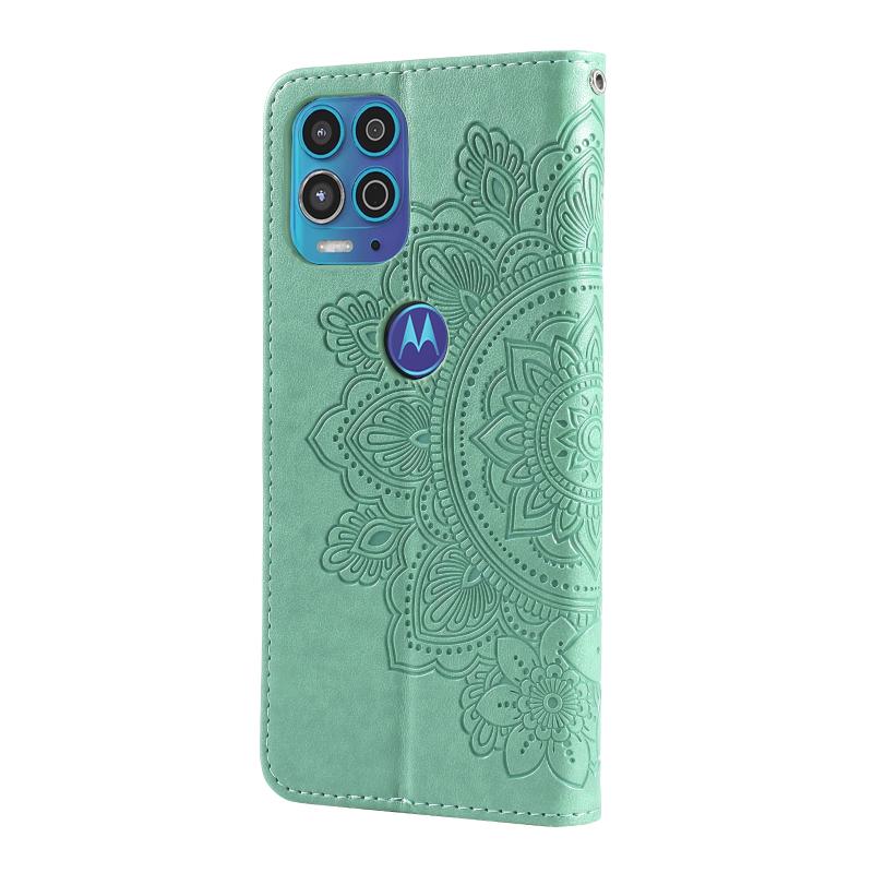 For Motorola Moto G100 / Edge S 7-petal Flowers Embossing Pattern Horizontal Flip PU Leather Case with Holder & Card Slots & Wallet & Photo Frame(Green)