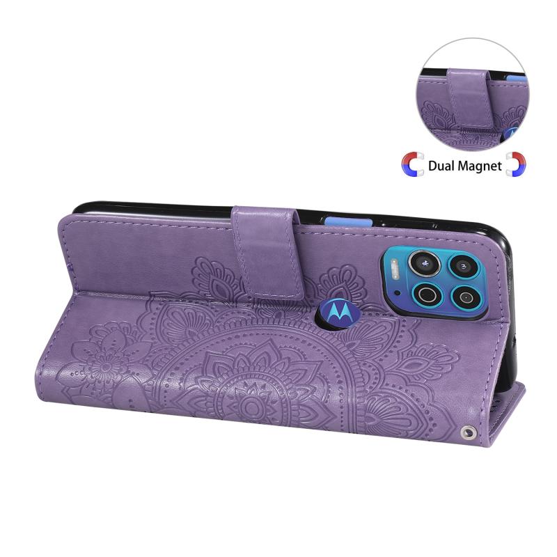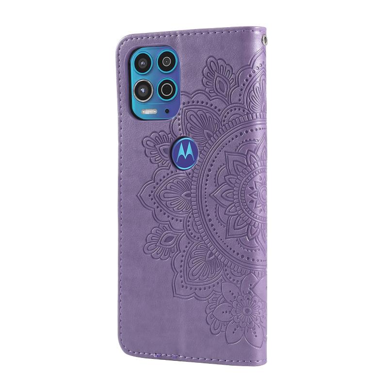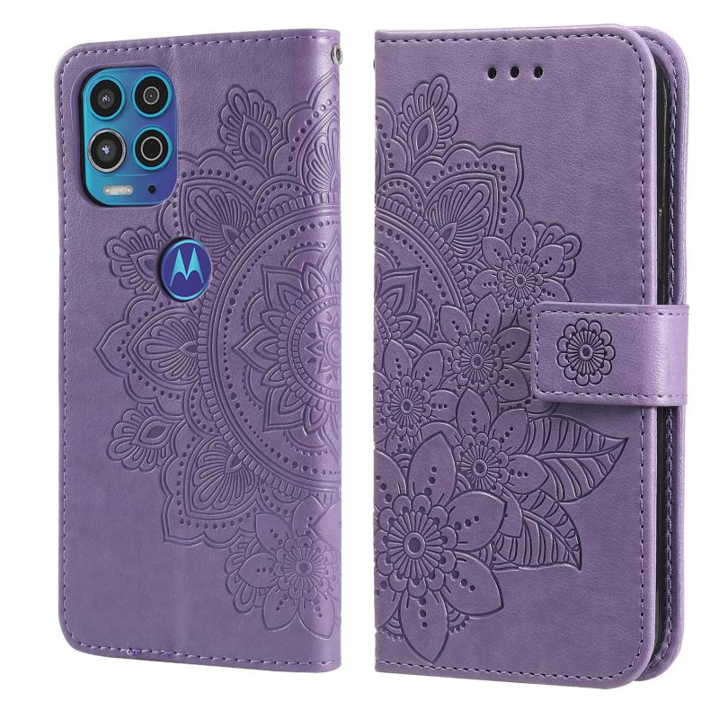 For Motorola Moto G100 / Edge S 7-petal Flowers Embossing Pattern Horizontal Flip PU Leather Case with Holder & Card Slots & Wallet & Photo Frame(Light Purple)