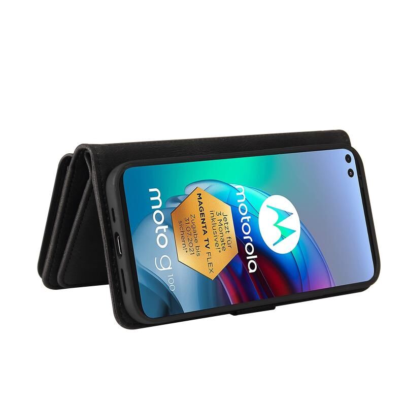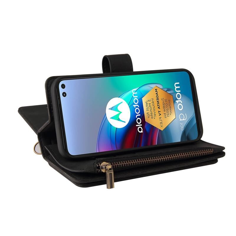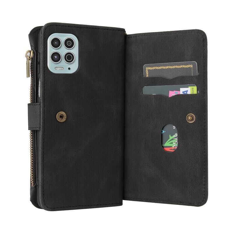 Για το Motorola Moto G100 Skin Feel PU + TPU Οριζόντια Flip δερμάτινη θήκη με υποδοχή & 15 κάρτες Slot & πορτοφόλι & φερμουάρ τσέπη & Lanyard (Μαύρο)