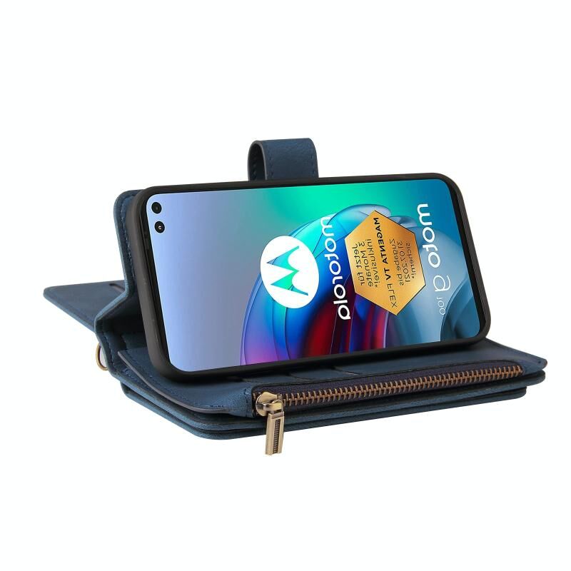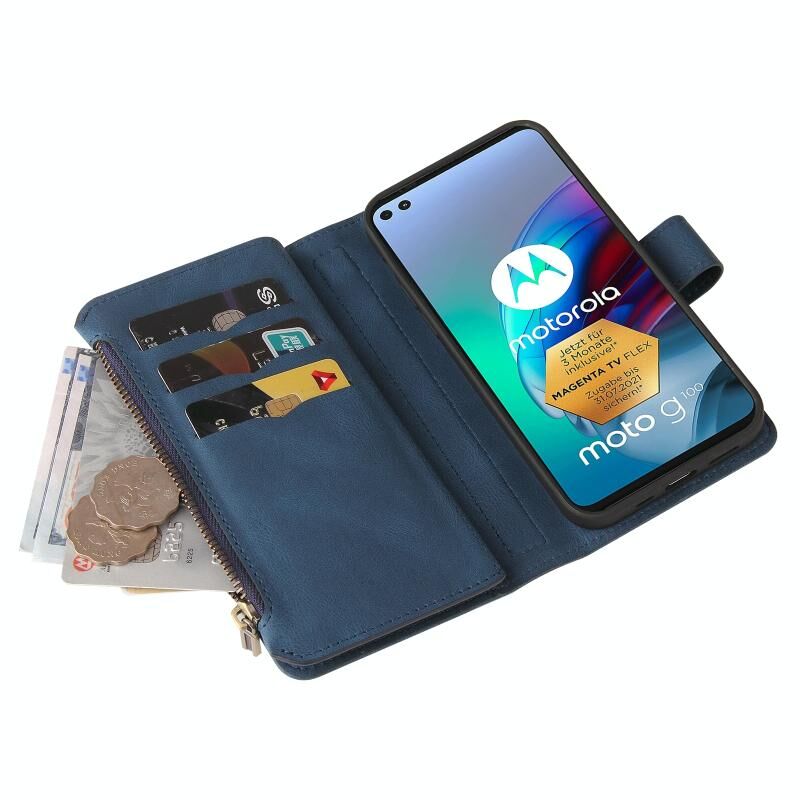 Για το Motorola Moto G100 Skin Feel PU + TPU Οριζόντια Flip δερμάτινη θήκη με υποδοχή & 15 κάρτες Slot & πορτοφόλι & φερμουάρ τσέπη & Lanyard (Μπλε)