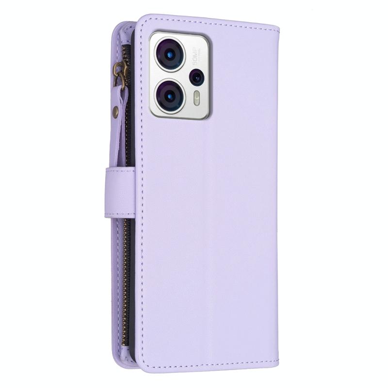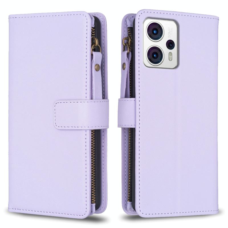 Για Motorola Moto G13 4G / G23 4G / G53 5G Θήκη Τηλεφώνου από Δέρμα με Φερμουάρ και 9 Θήκες για Κάρτες (ανοιχτό μωβ)