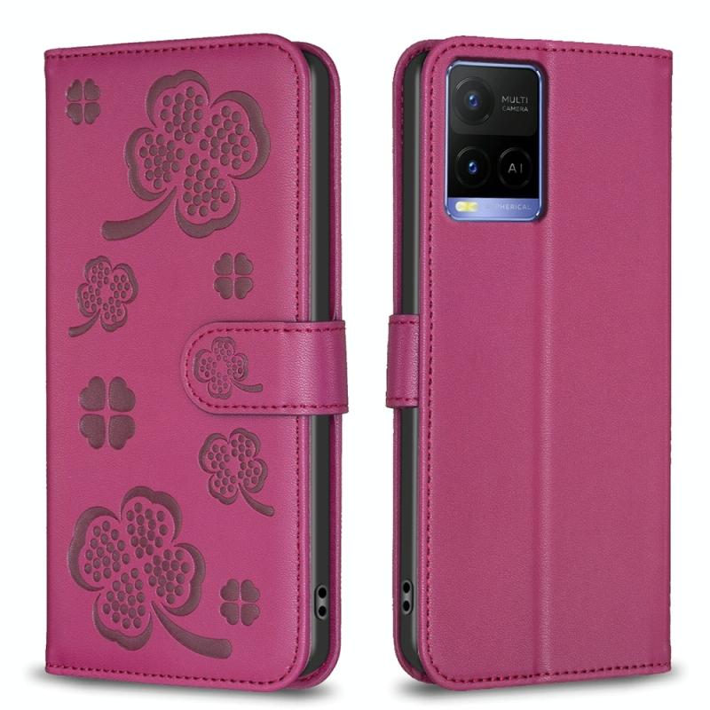 For Motorola Moto G13 4G / G23 4G / G53 5G Four-leaf Embossed Leather Phone Case(Rose Red)