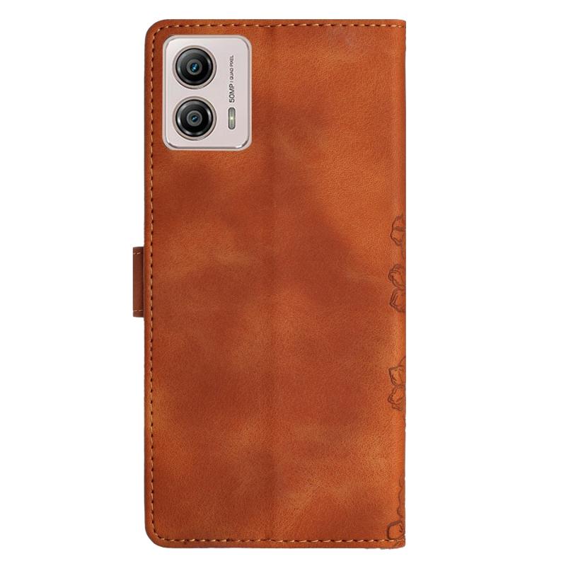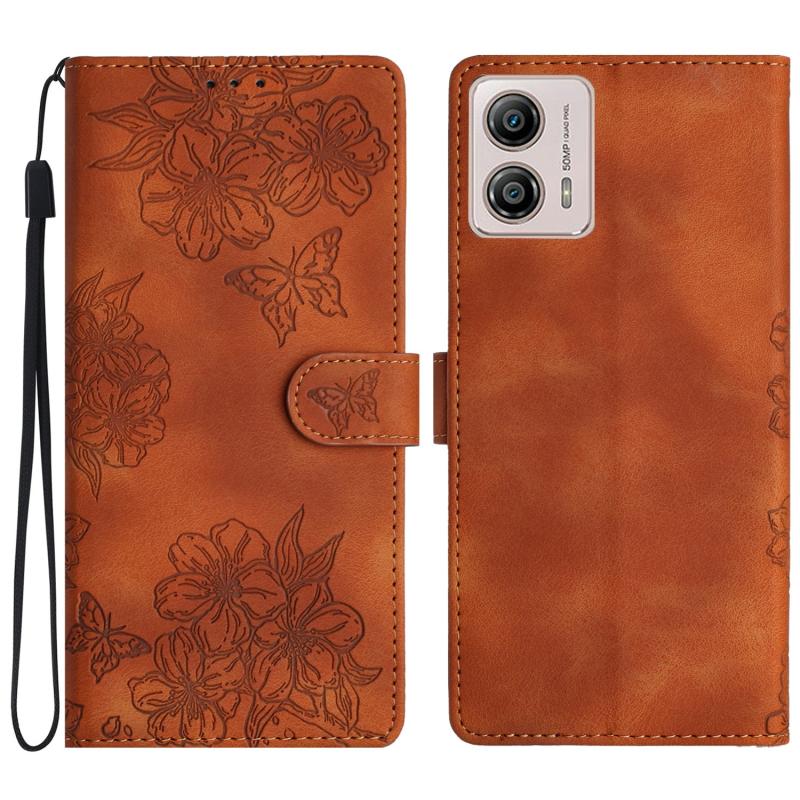 For Motorola Moto G13 Cherry Blossom Butterfly Skin Feel Embossed PU Phone Case(Brown)