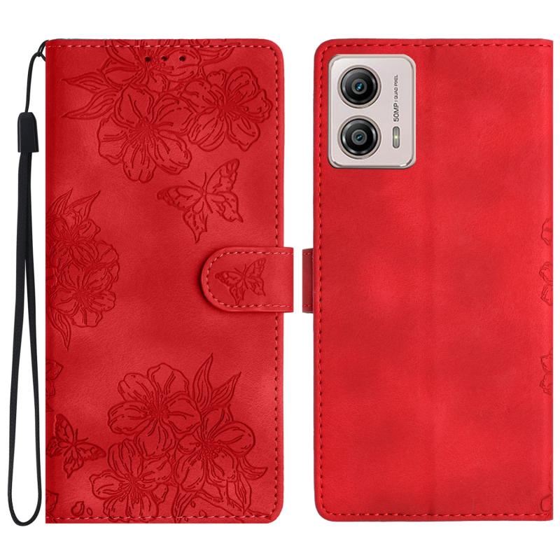 For Motorola Moto G13 Cherry Blossom Butterfly Skin Feel Embossed PU Phone Case(Red)