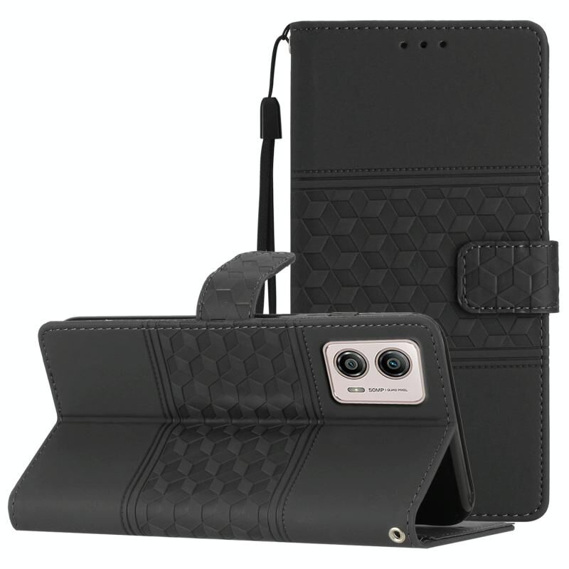 Για Motorola Moto G13 Diamond ανάγλυφο δέρμα αίσθηση δέρμα τηλέφωνο υπόθεση με κορδόνι (μαύρο)