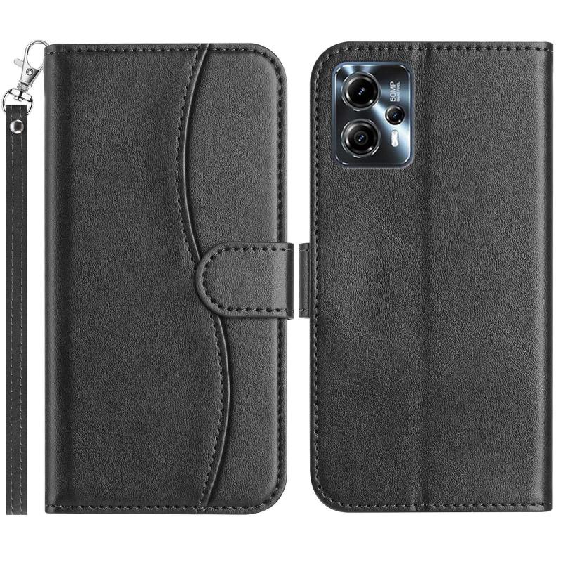 For Motorola Moto G13 Dual-Folded S-shape Leather Phone Case(Black)