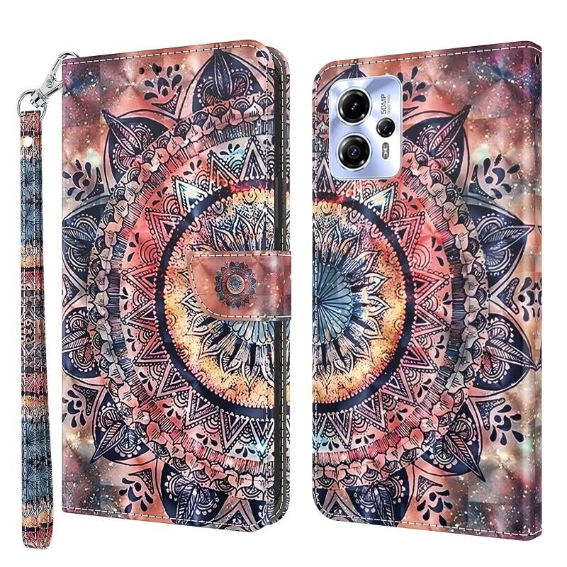 Θήκη τηλεφώνου από δέρμα με τρισδιάστατη ζωγραφική για Motorola Moto G13 / G23 (Πολύχρωμο Μάνταλα)