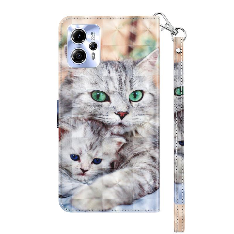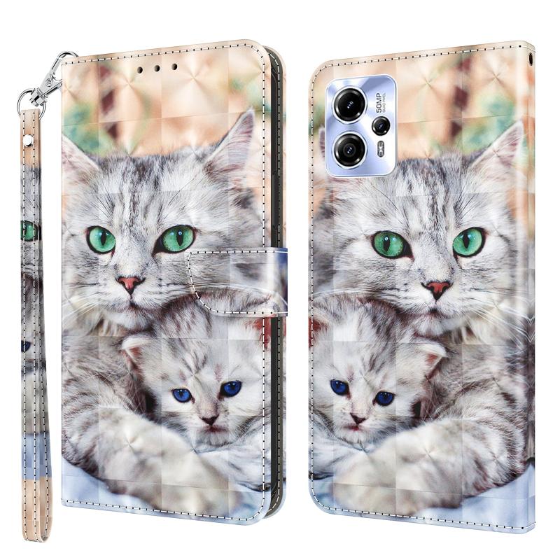 For Motorola Moto G13 / G23 3D Painted Leather Phone Case(Two Loving Cats)