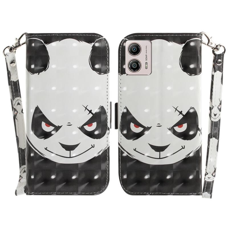 Θήκη τηλεφώνου δερμάτινη, οριζόντια, αναδιπλούμενη, με έγχρωμο 3D σχέδιο (θυμωμένη αρκούδα) για Motorola Moto G13 / G23 / G53.