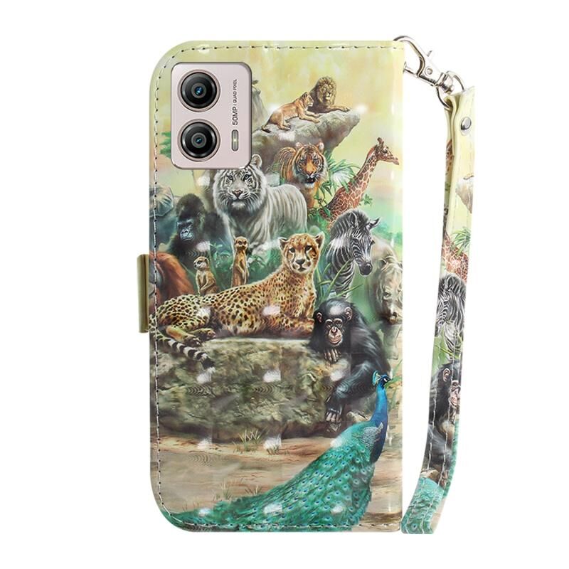 Θήκη τηλεφώνου δερμάτινη, οριζόντια, αναδιπλούμενη, με έγχρωμα 3D σχέδια για Motorola Moto G13 / G23 / G53 (Ζωολογικός κήπος)