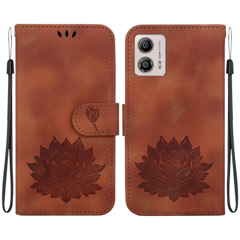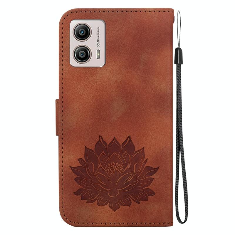 For Motorola Moto G13 / G23 / G53 Lotus Embossed Leather Phone Case(Brown)