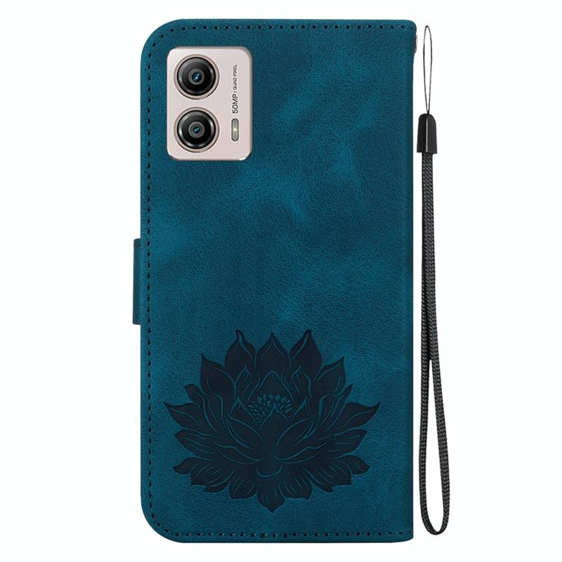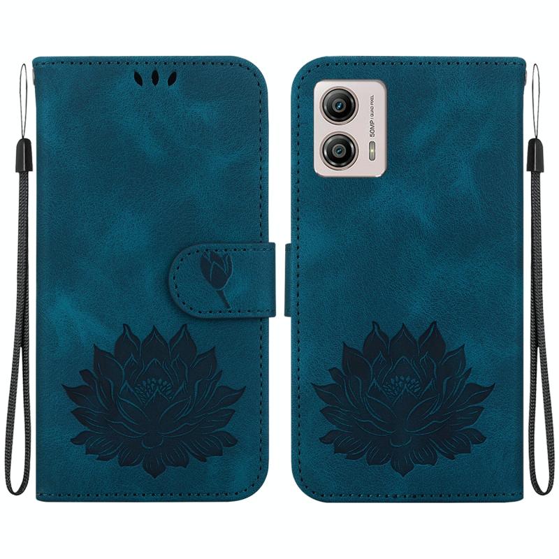 For Motorola Moto G13 / G23 / G53 Lotus Embossed Leather Phone Case(Dark Blue)