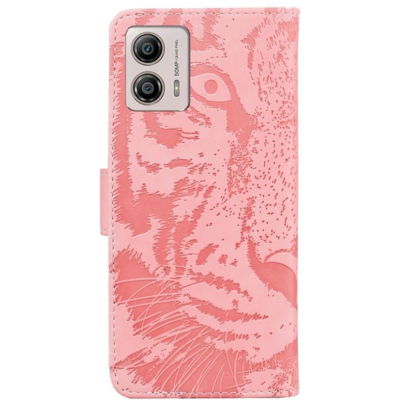 Θήκη τηλεφώνου δερμάτινη με ανάγλυφο μοτίβο τίγρης για Motorola Moto G13 / G23 / G53 (ρόζ)