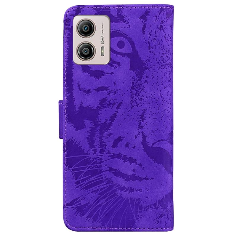 Θήκη τηλεφώνου δερμάτινη με ανάγλυφο μοτίβο τίγρης για Motorola Moto G13 / G23 / G53 (Μωβ)