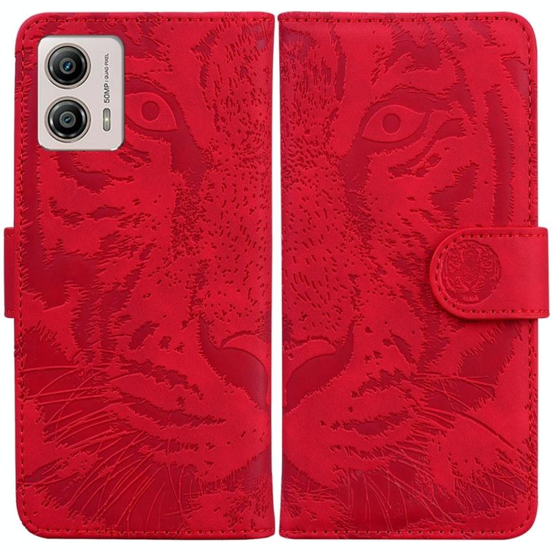 Θήκη τηλεφώνου δερμάτινη με ανάγλυφο μοτίβο τίγρης για Motorola Moto G13 / G23 / G53 (Κόκκινο)