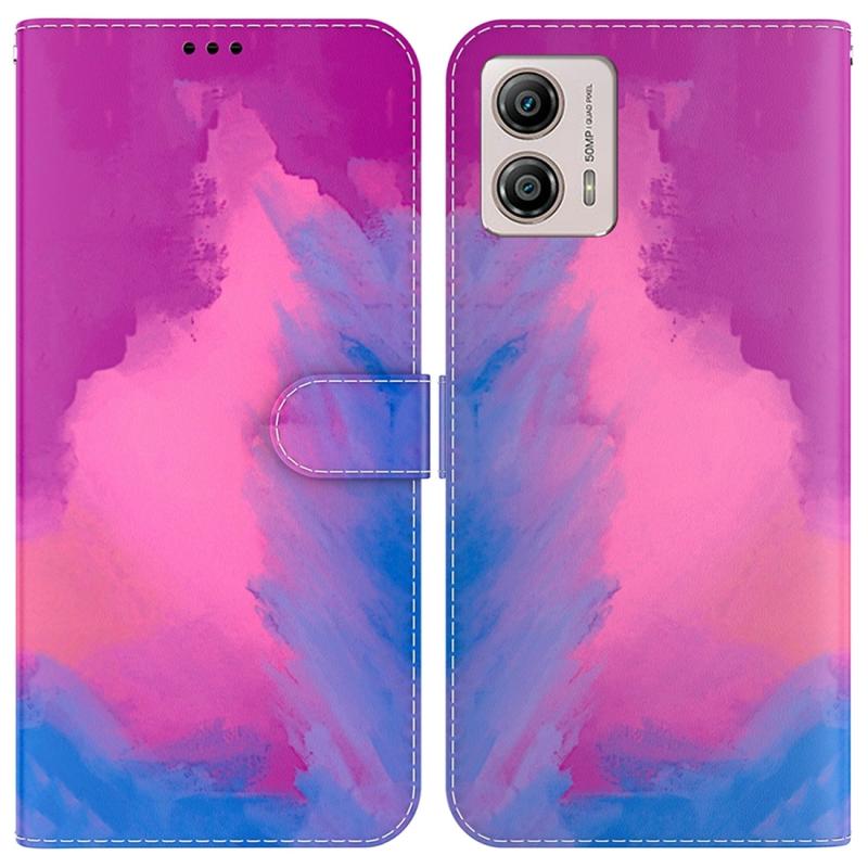Θήκη τηλεφώνου από δέρμα με σχέδιο ακουαρέλας για Motorola Moto G13 / G23 / G53 (Μωβ-κόκκινο)