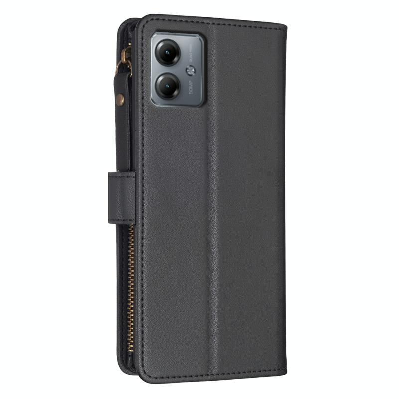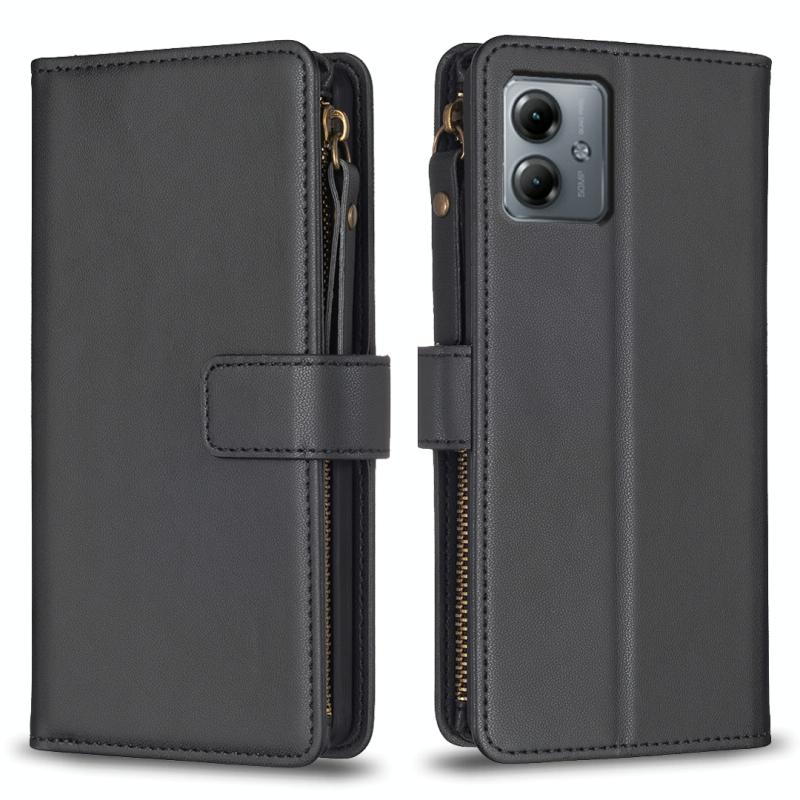 Για Motorola Moto G14 4G, Θήκη Τηλεφώνου από Δέρμα με Φερμουάρ και 9 Θήκες Καρτών (Μαύρο)