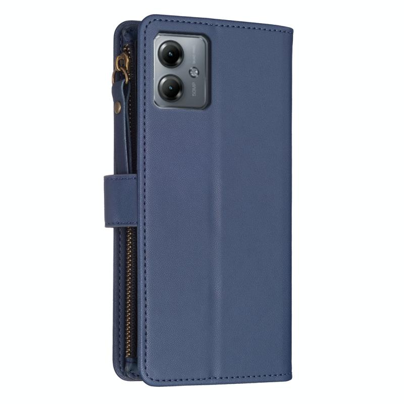 Για Motorola Moto G14 4G, Θήκη Τηλεφώνου από Δέρμα με Φερμουάρ και 9 Θήκες Καρτών (Μπλε)