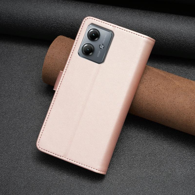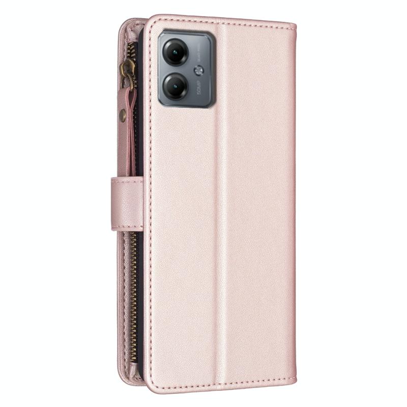 Για Motorola Moto G14 4G, Θήκη Τηλεφώνου από Δέρμα με Φερμουάρ και 9 Θήκες Καρτών (Ροζ χρυσός)