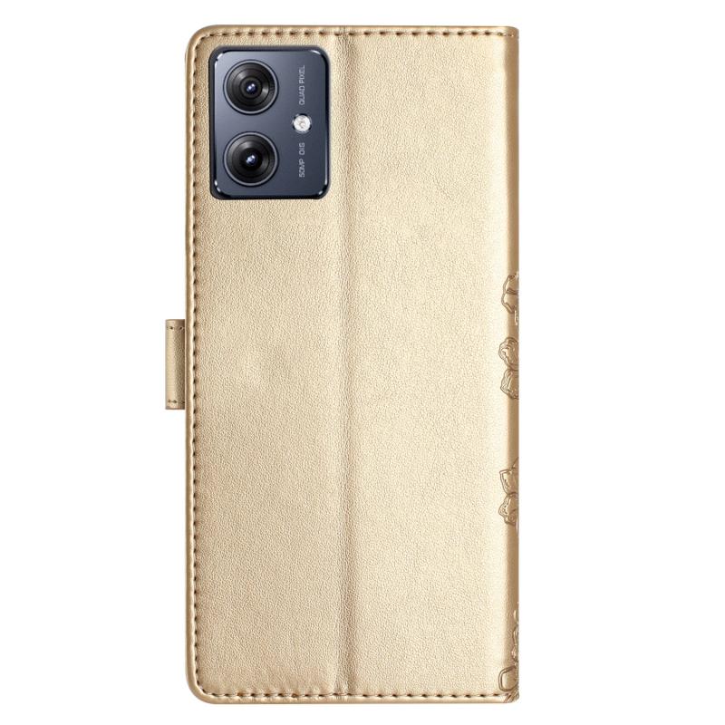 For Motorola Moto G14 4G Cherry Blossom Butterfly Skin Feel Embossed PU Phone Case(Gold)