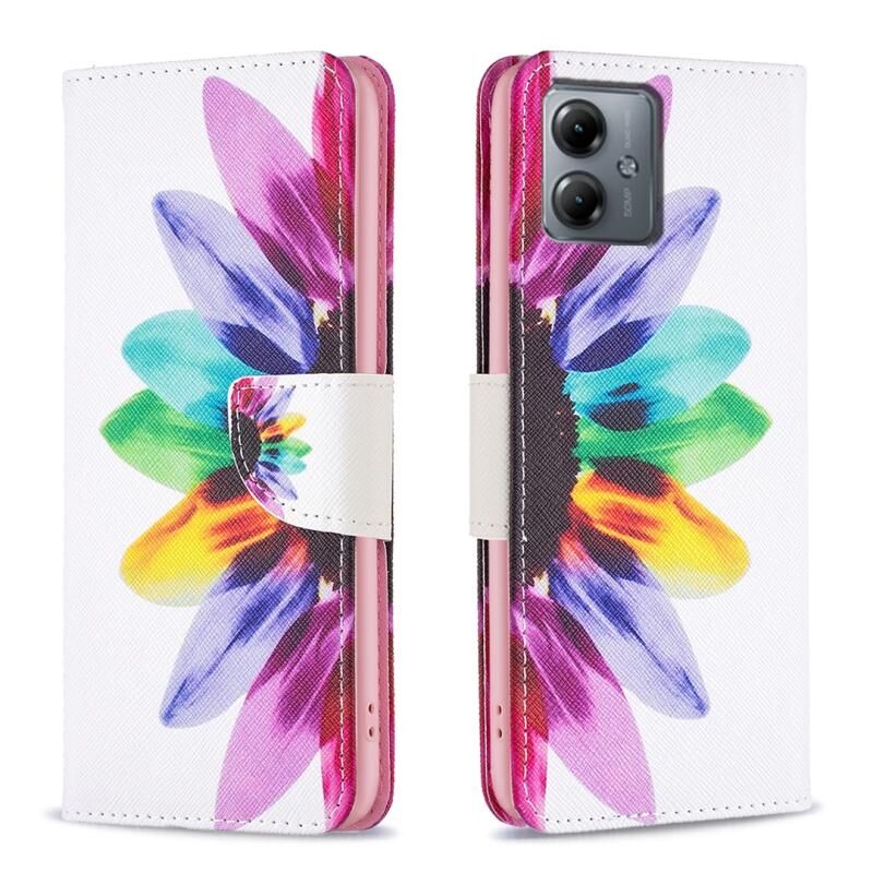 Θήκη τηλεφώνου δερμάτινη με έγχρωμο σχέδιο για Motorola Moto G14 4G (Ηλιάνθος)