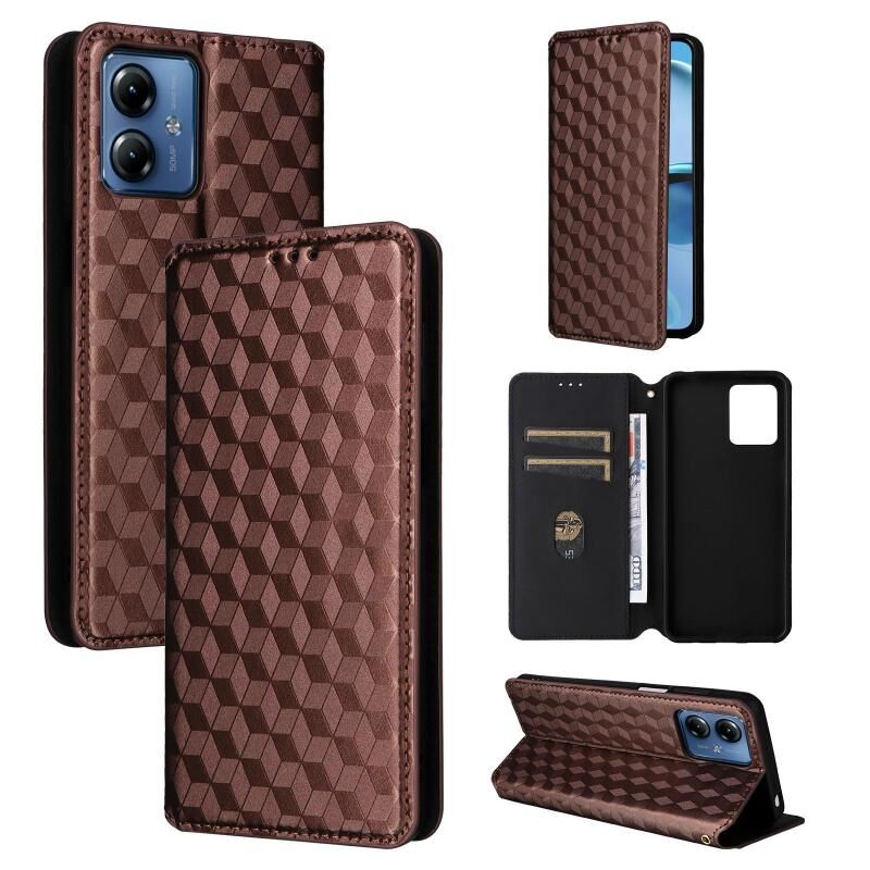Θήκη τηλεφώνου από δέρμα με υφή Cubic Grid για Motorola Moto G14 4G (Καφέ)