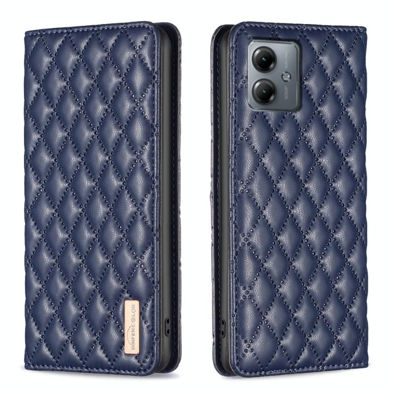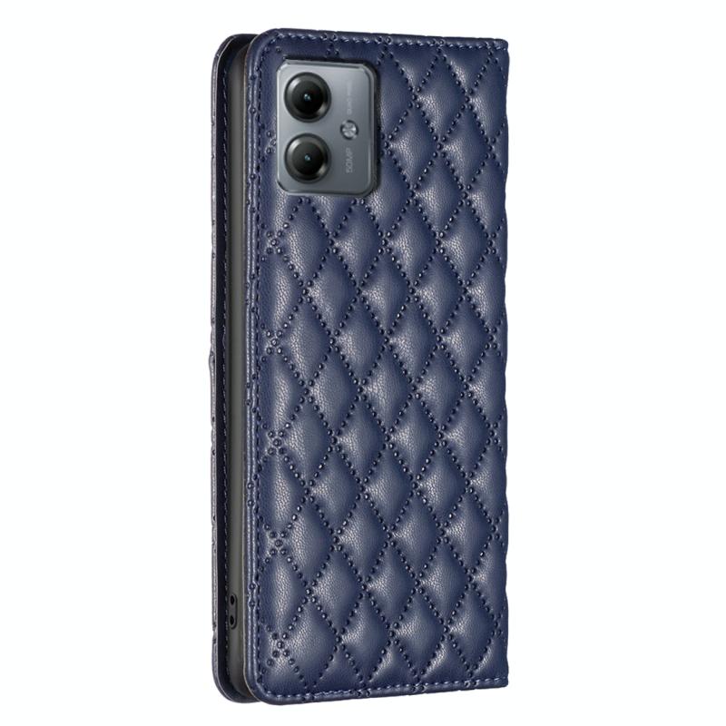 For Motorola Moto G14 4G Diamond Lattice Magnetic Leather Flip Phone Case(Blue)