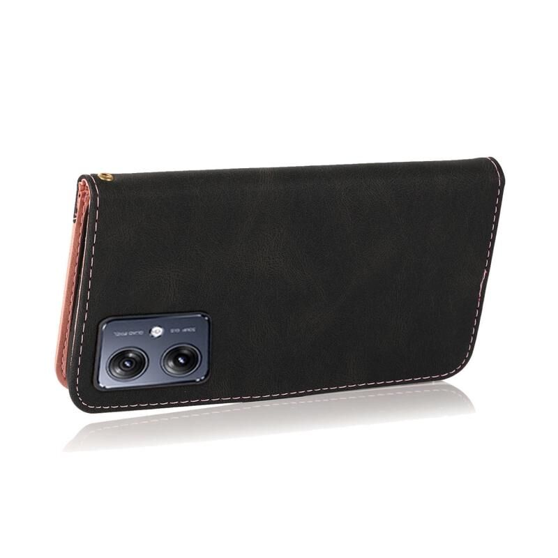 Για Motorola Moto G14 4G Διπλό χρώμα ραφή δερμάτινη θήκη τηλεφώνου (μαύρο ροζ χρυσό)