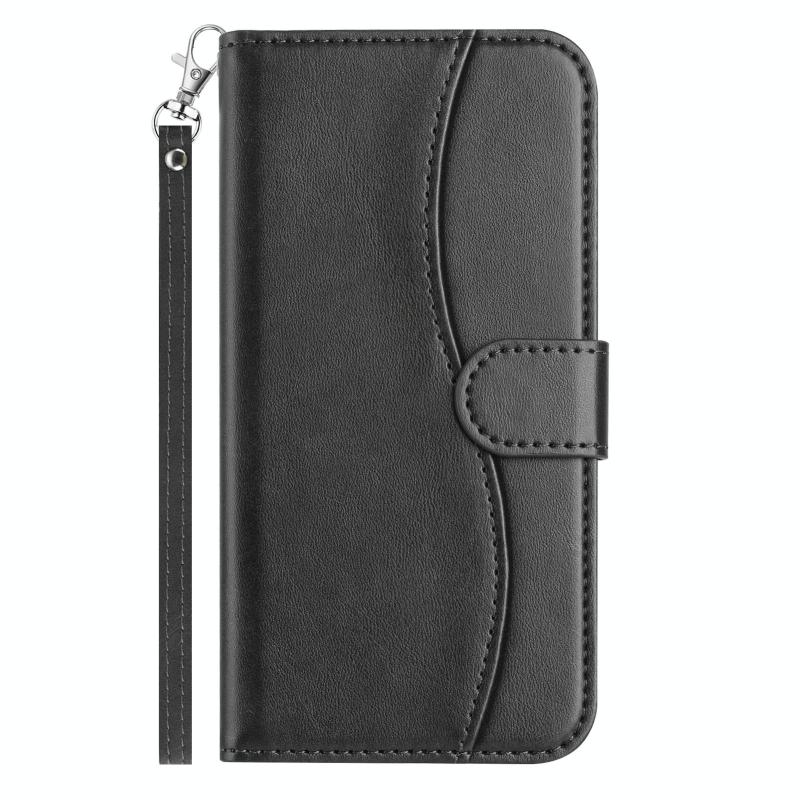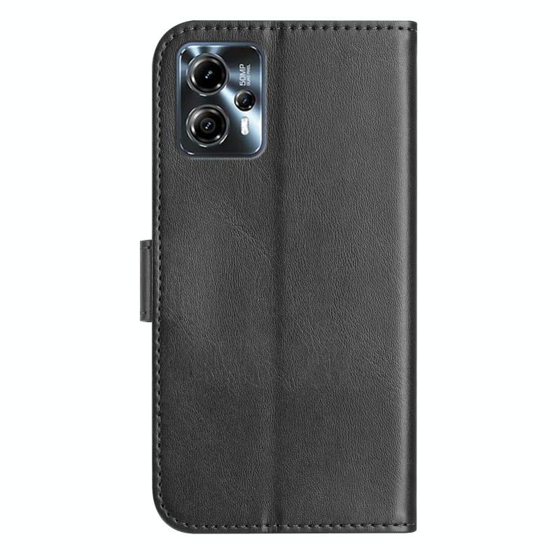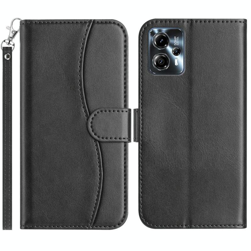 For Motorola Moto G14 4G Dual-Folded S-shape Leather Phone Case(Black)