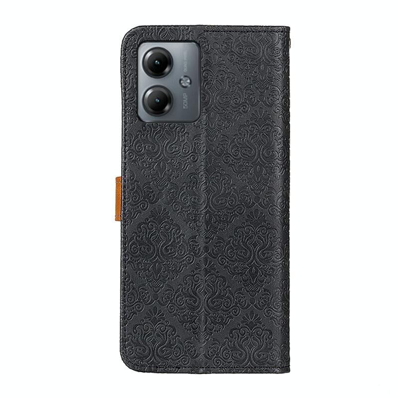Για Motorola Moto G14 4G Ευρωπαϊκή Floral ανάγλυφη Flip δερμάτινη θήκη τηλεφώνου (μαύρο)