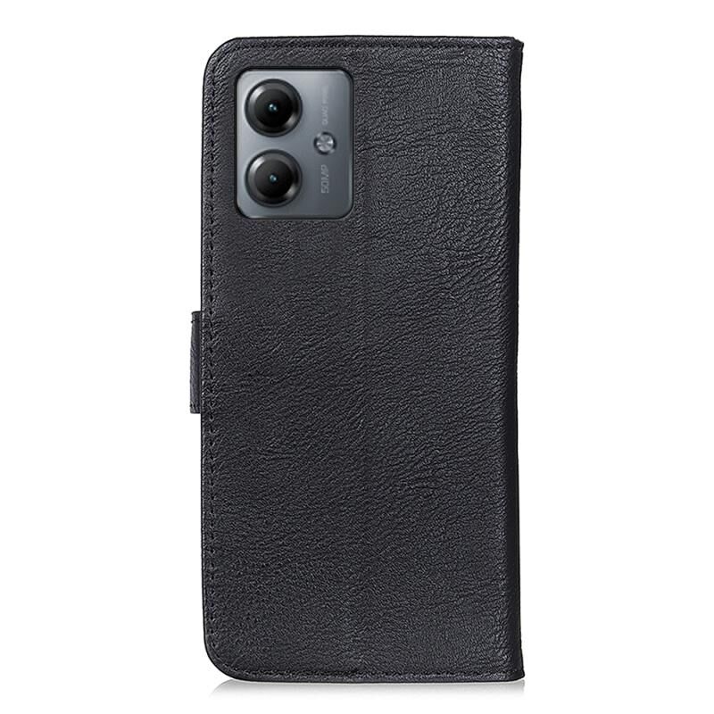 Θήκη τηλεφώνου από δέρμα με υφή δέρματος αγελάδας KHAZNEH, τύπου flip, για Motorola Moto G14 4G (Μαύρο)