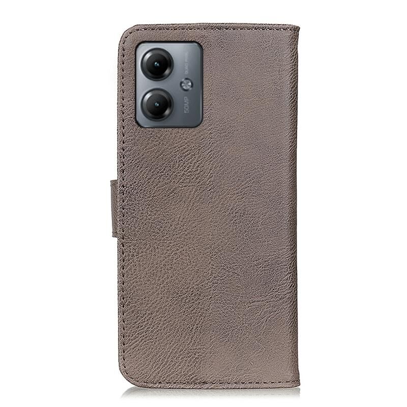 Θήκη τηλεφώνου από δέρμα με υφή δέρματος αγελάδας KHAZNEH, τύπου flip, για Motorola Moto G14 4G (Χακί)
