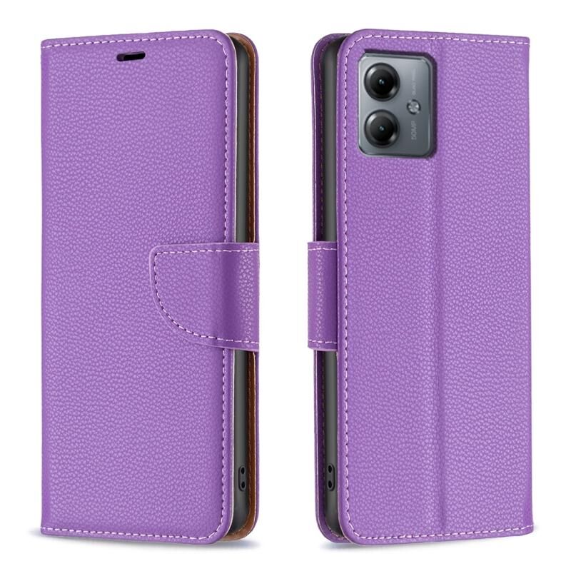 Για Motorola Moto G14 4G Litchi Texture Pure Color Flip δέρμα τηλέφωνο υπόθεση (μωβ)