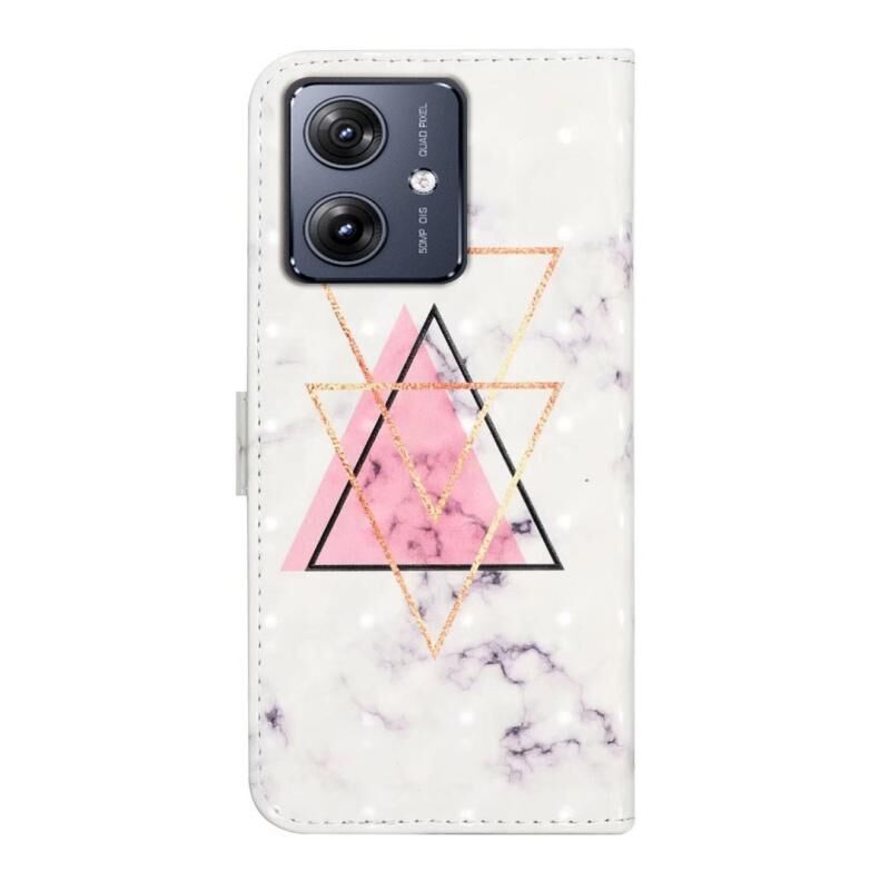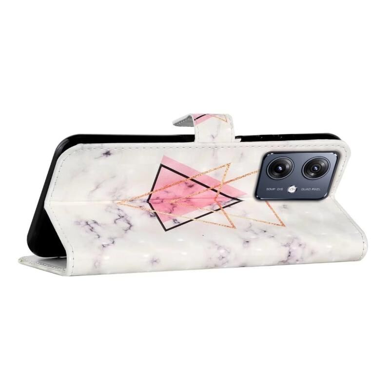 Θήκη τηλεφώνου δερμάτινη με ανάγλυφο σχέδιο λαδιού και 3D σχέδιο για Motorola Moto G14 4G (Τριγωνικό Μάρμαρο)