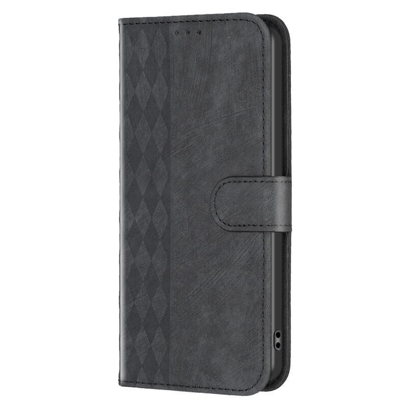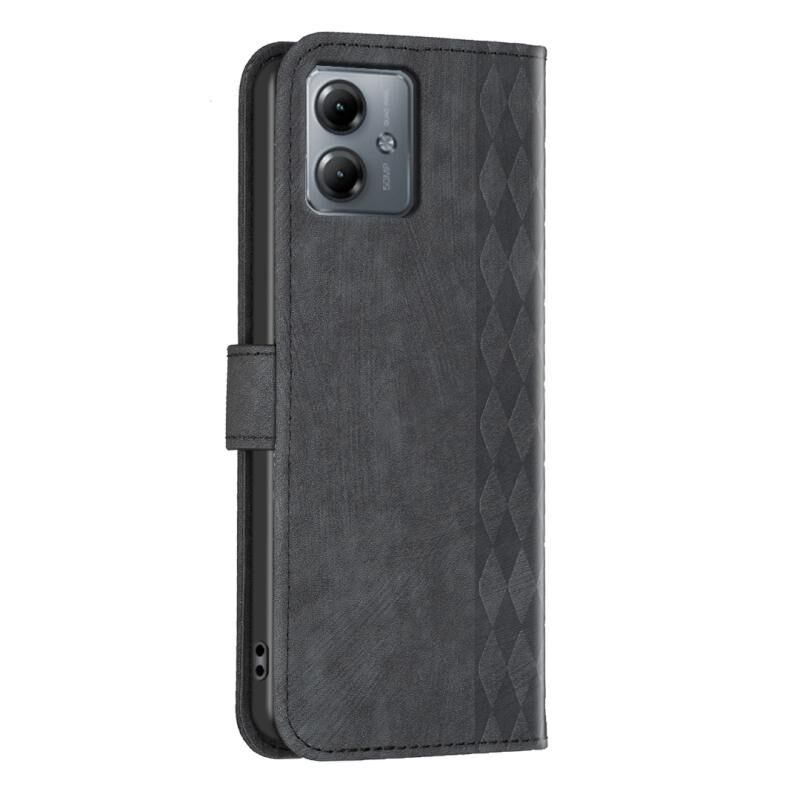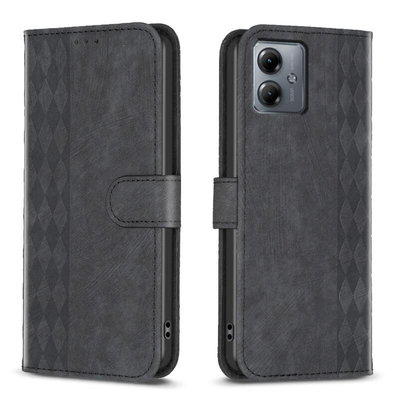 Για Motorola Moto G14 4G καρό ανάγλυφη δερμάτινη θήκη τηλεφώνου (μαύρο)