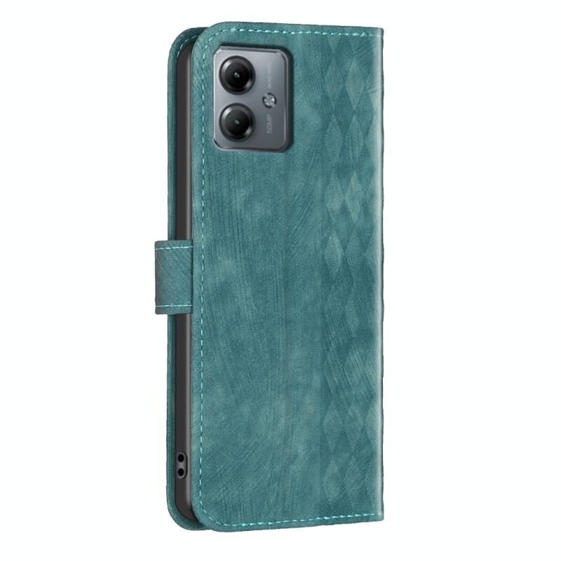 Για Motorola Moto G14 4G καρό ανάγλυφη δερμάτινη θήκη τηλεφώνου (πράσινο)