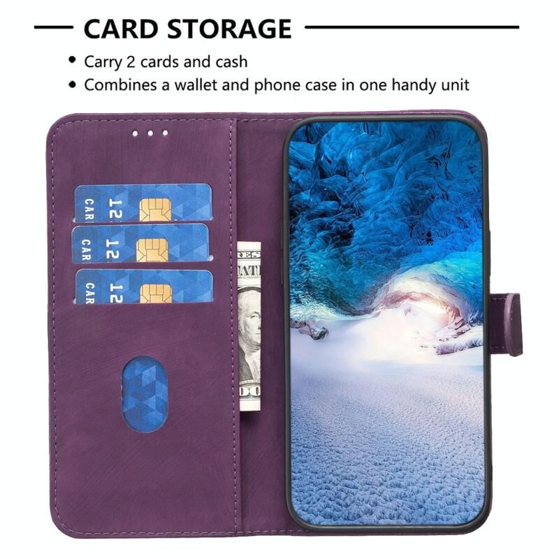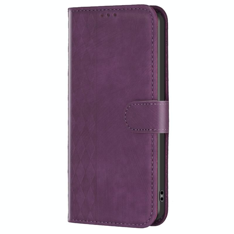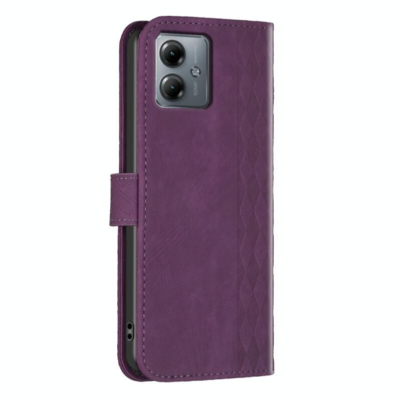 Για Motorola Moto G14 4G καρό ανάγλυφη δερμάτινη θήκη τηλεφώνου (μωβ)