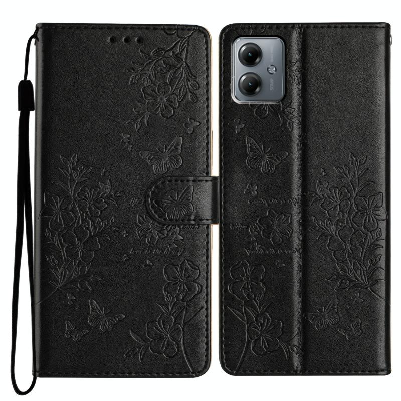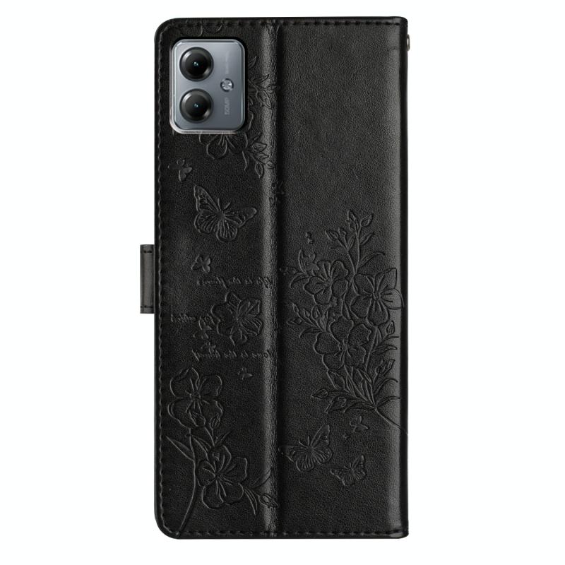 For Motorola Moto G14 Butterflies and Flowers Leather Phone Case(Black)